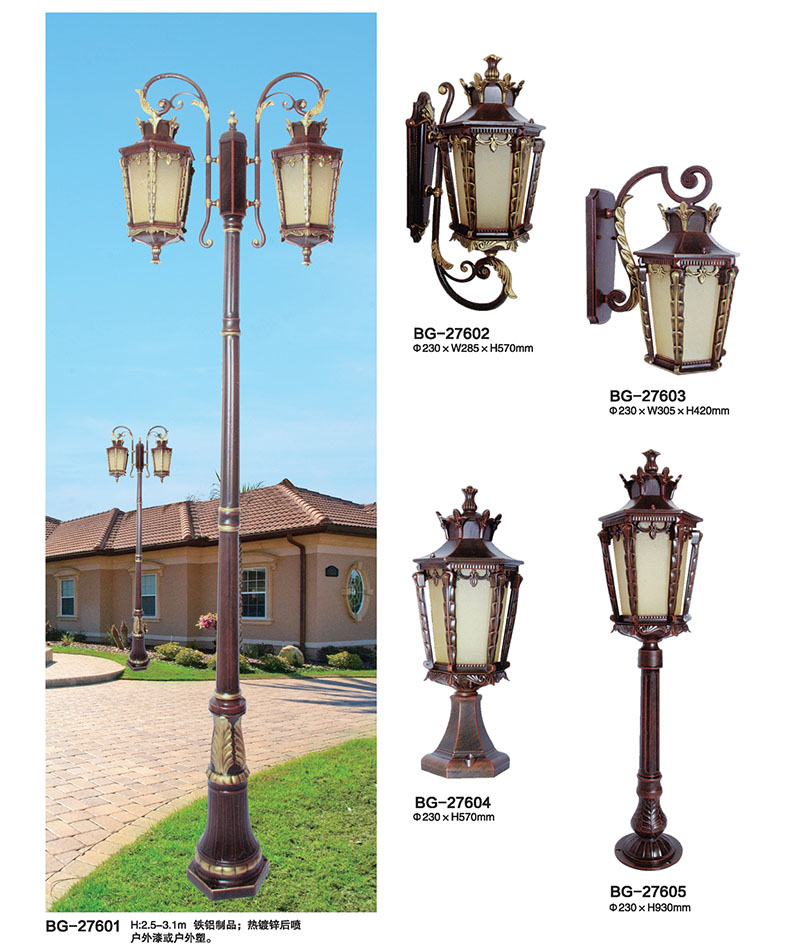 * 庭院灯可根据照明需求自由选择:单头庭院灯、双头庭院灯;