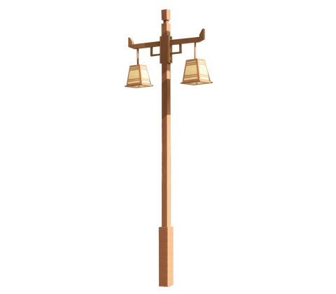 (QDTYD-FG004)特色仿古双头木纹漆庭院灯材质描述:* 庭院灯主杆采用Q235镀锌方管或不锈钢方管,通过焊接工艺,表面精细打磨;