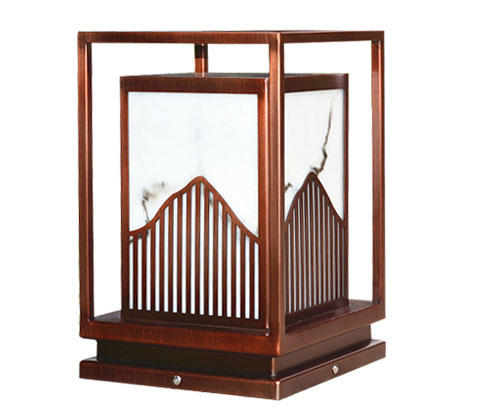 (QDZTD-010)新中式不锈钢镀铜拉丝仿云石柱头灯材质描述: